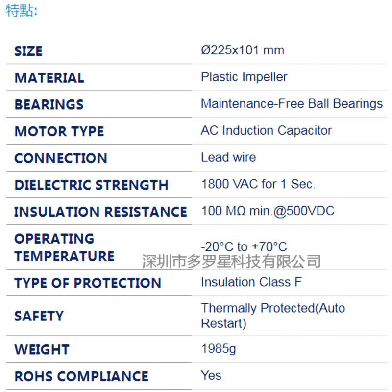 公司簡介:深圳市多羅星科技成立于2003年,位于廣東深圳,主要經營臺灣AC風機,EC風機,DC風機,風扇罩,鍍鋁板鍍鋅板不銹鋼葉輪和耐高溫定制電機,超高溫無刷電機等等。同時擁有EBM-PAPST、臺灣慣展、福佑、達盈、信灣、百瑞、三協、嶄昱等臺灣,德國,日本知名品牌的代理權。