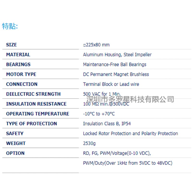 公司簡介:深圳市多羅星科技成立于2003年,位于廣東深圳,主要經營臺灣AC風機,EC風機,DC風機,風扇罩,鍍鋁板鍍鋅板不銹鋼葉輪和耐高溫定制電機,超高溫無刷電機等等。同時擁有EBM-PAPST、臺灣慣展、福佑、達盈、信灣、百瑞、三協、嶄昱等臺灣,德國,日本知名品牌的代理權。