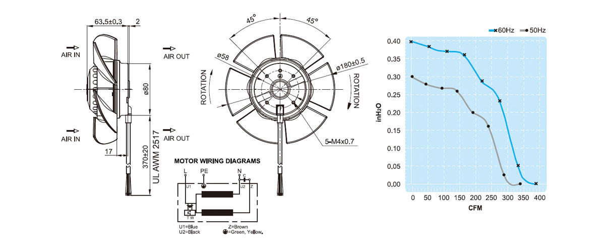 全新原裝臺灣福佑180mm無框外轉(zhuǎn)子電機主軸承散熱風(fēng)機115V 230V